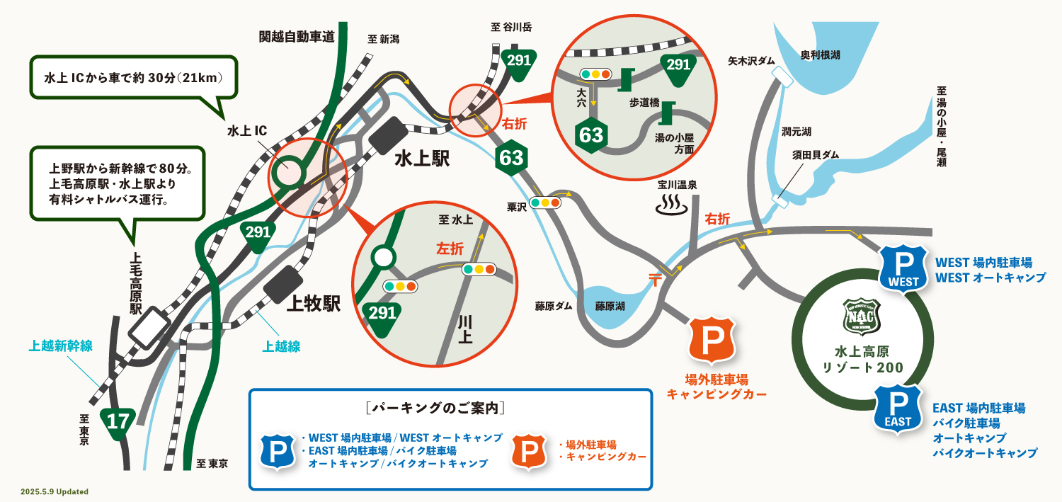 ※ナビには上記「水上高原ホテル200」の住所をご入力いただき、ホテル到着手前左手の「水上高原日帰りスキーセンター」を目指してご来場ください。